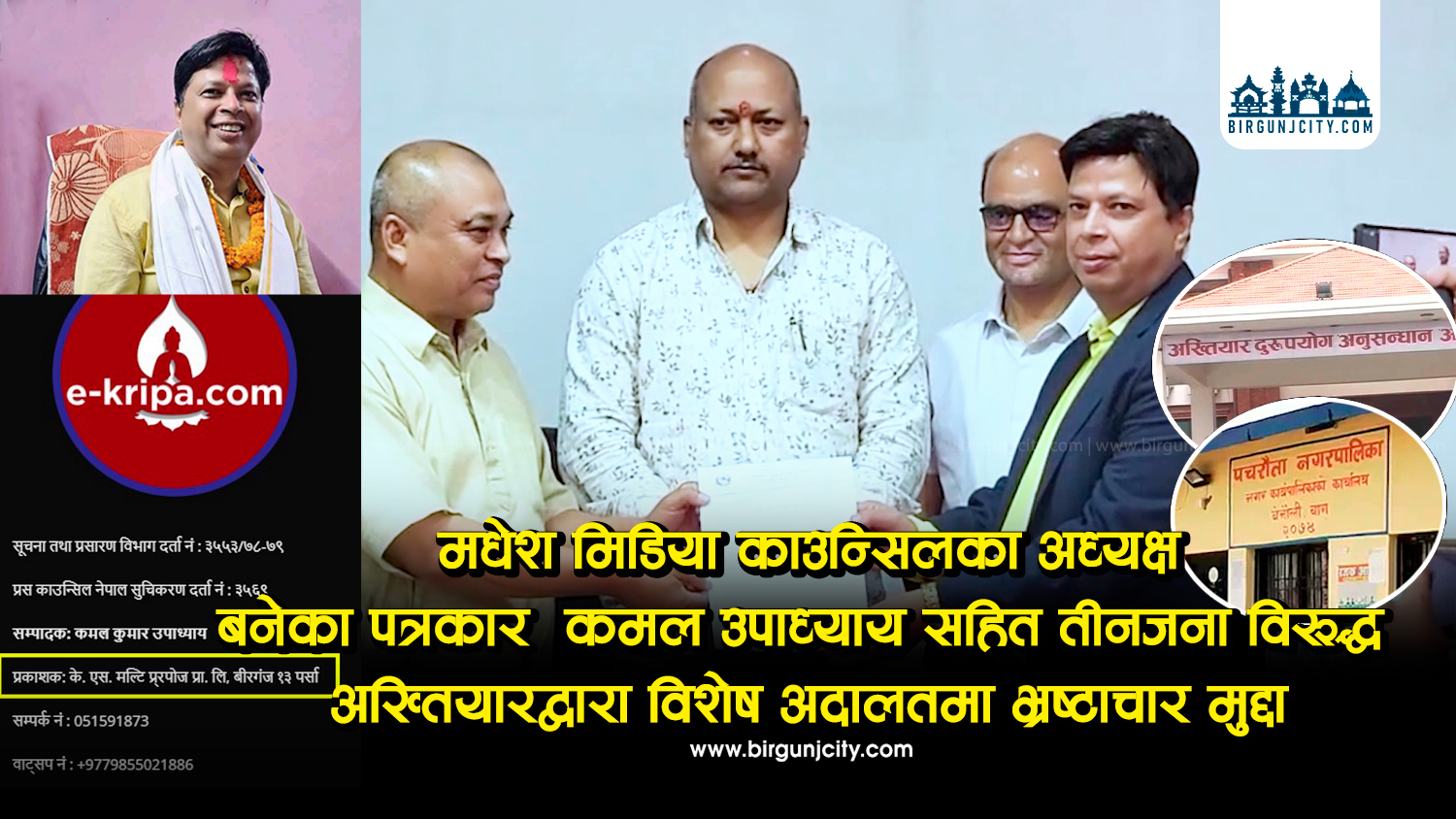 वीरगञ्जस्थित बाइपास सडक क्षेत्रमा रेस्टुरेन्ट सञ्चालन गर्दै आएका कमल कुमार उपाध्याय प्रहरीको धरपकडले आजित बनेर पत्रिका सञ्चालन गर्न पुगेकाे एक स्थानिय बताउँछन् । पत्रिका सञ्चालन गरेर पत्रकारको आवरण बनाएका उनले विभिन्न पालिकाका प्रमुखहरूसँग मिलेर योजनाहरू हात पार्दै आएका छन् । २०५६ सालबाट शुभलक्ष्मी प्रेस मार्फत कृपा नामक पत्रिका बारा जिल्लामा दर्ता गराएका उपाध्यायले २०५८ सालबाट औपचारिक रुपमा कृपा साप्ताहिक संचालनमा ल्याएका थिए ।
