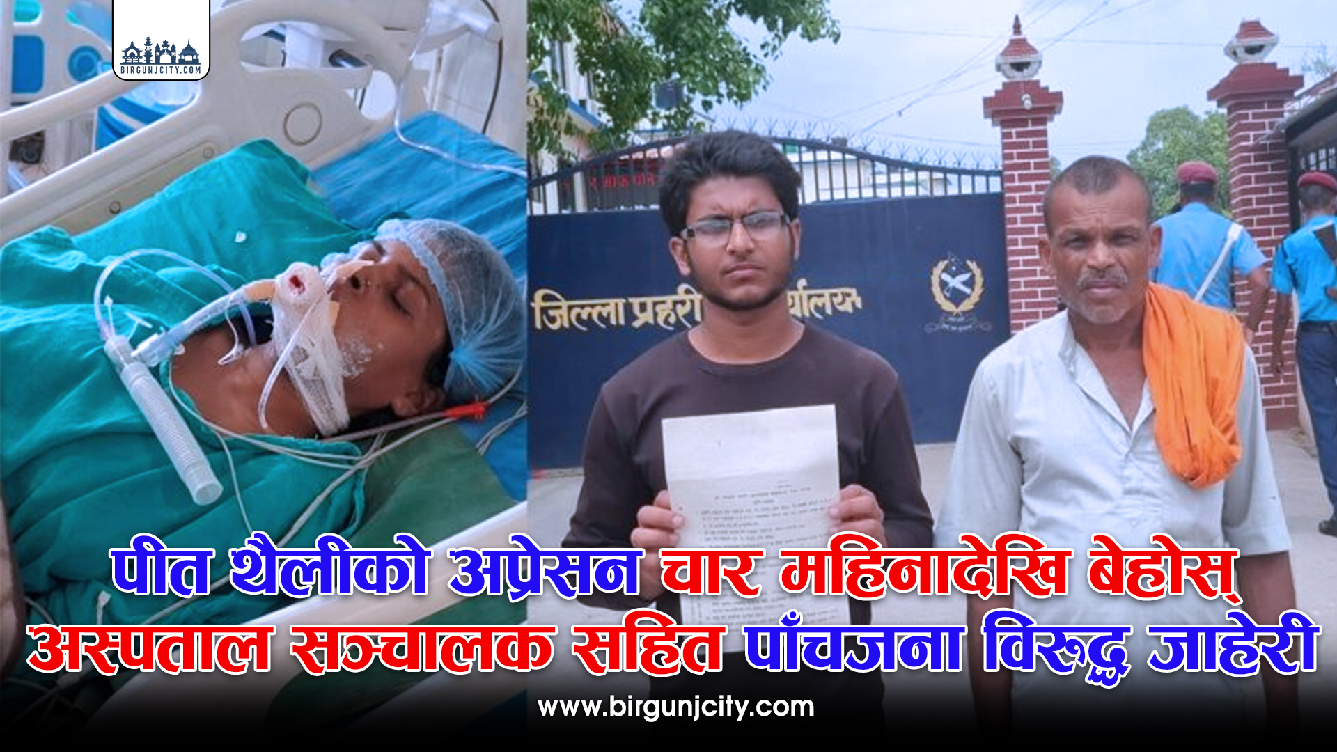 पित्तथैलीको शल्यक्रियापछि चार महिनासम्म होसमा नआएकी सर्लाहीकी २५ वर्षीया पविता यादवको उपचारमा लापरबाही भएको आरोपमा उनका परिवारले जनकपुरधामस्थित एक निजी अस्पतालका सञ्चालकसहित पाँचजनाविरुद्ध जाहेरी दिएका छन् ।
