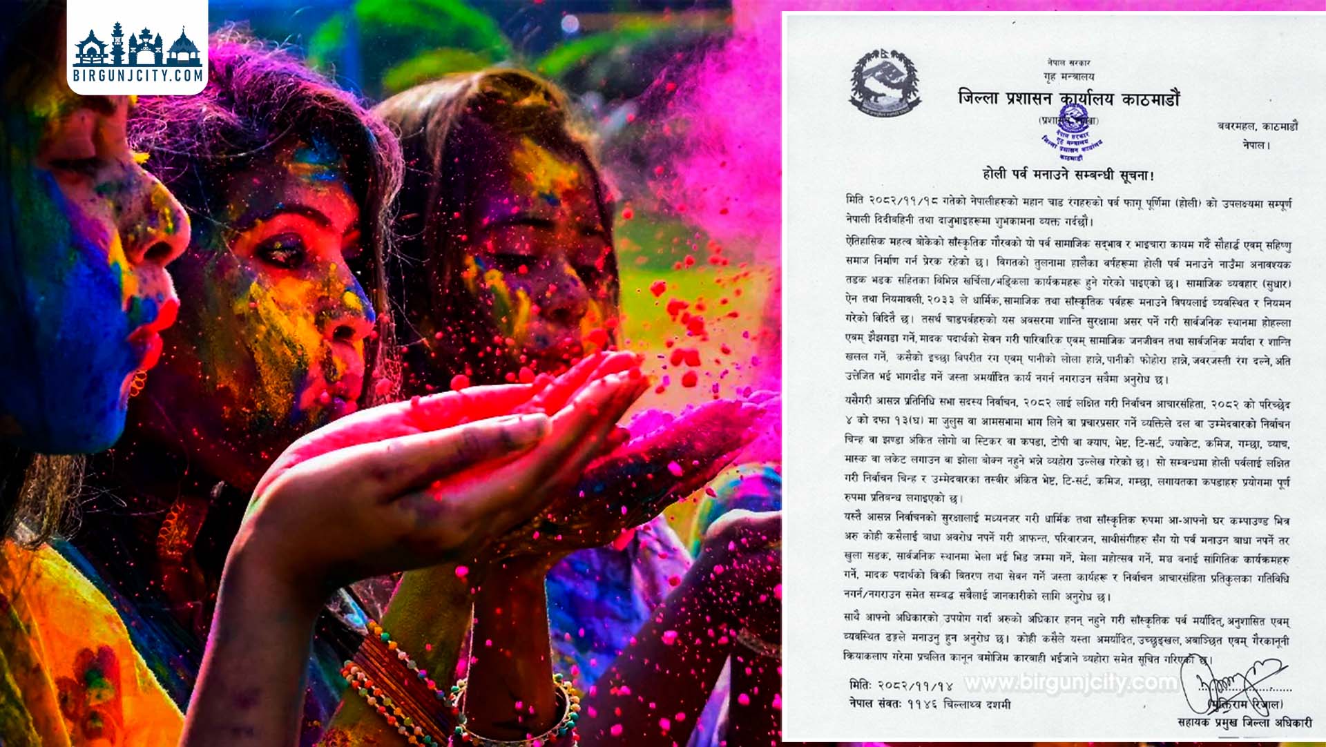 होली पर्वलाई चुनाव प्रचारको माध्यम बनाउन सक्ने सम्भावनालाई मध्यनजर गर्दै प्रशासनले विशेष कडाइ गरेको जनाएको छ ।