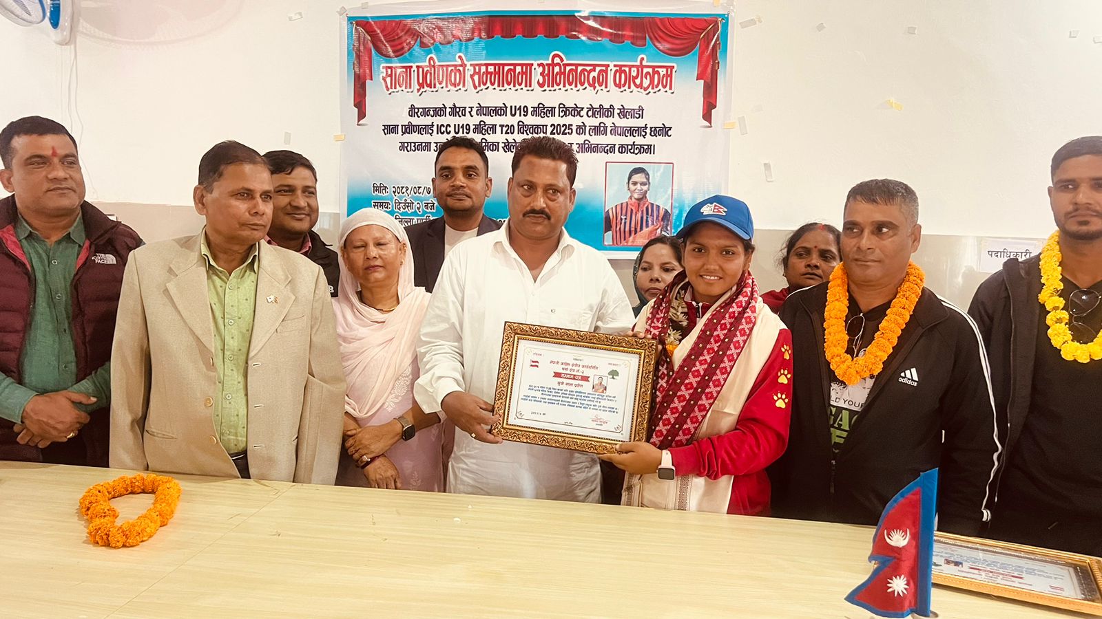 नेपाली कांग्रेस क्षेत्रीय कार्यसमिति क्षेत्र नं. २, पर्साले आईसीसी यू-१९ महिला टी-२० विश्वकप २०२५ मा स्थान बनाउन महत्वपूर्ण भूमिका खेलेकी वीरगन्ज-१२, मुर्लीकी क्रिकेट खेलाडी सना प्रवीणलाई विशेष अभिनन्दन गरेको छ र